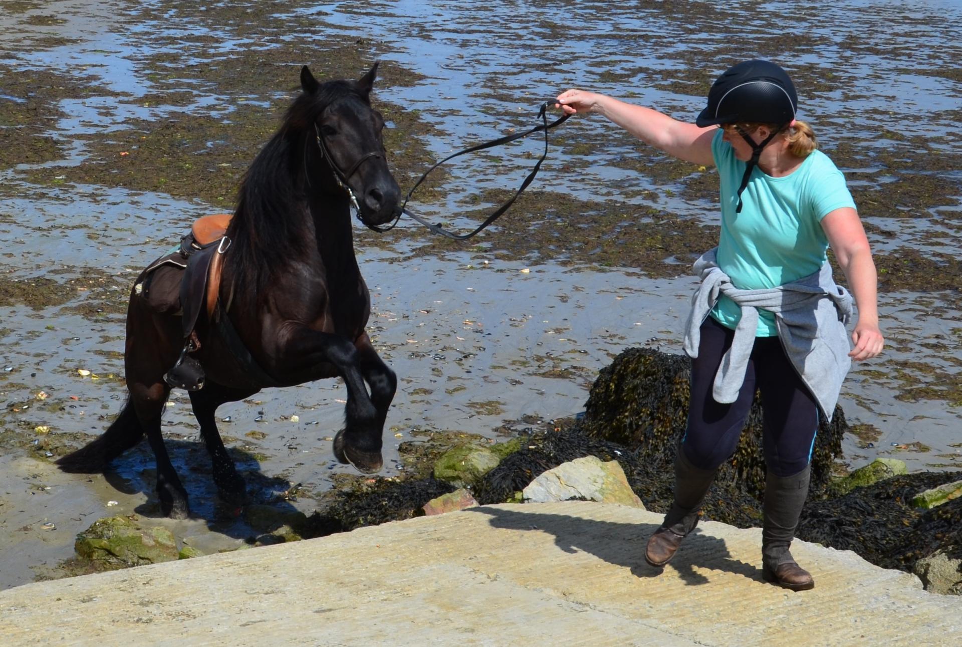 Depuis, son horizon s'est élargi. Son pied sûr et son caractère tout en rondeur l'ont vite transfromé en coqueluche des cavaliers qui ont besoin de se remettre en confiance. Il a pu faire découvrir à beaucoup les crêtes des Monts d'Arrée et les falaises de Crozon tout en acceptant en TREC de franchir ... au pas ... un tronc d'arbre. Ce n'est certes pas le successeur de Japeloup ... mais son coeur et sa fidélité en font cheval d'exception.